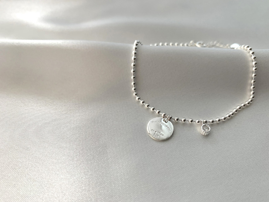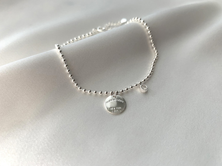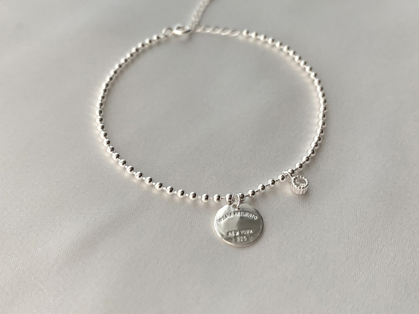 리턴투각인 큐빅 은볼발찌 실버925