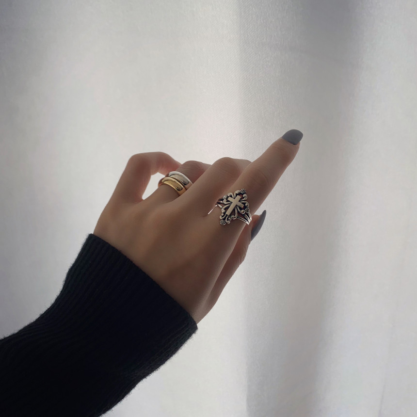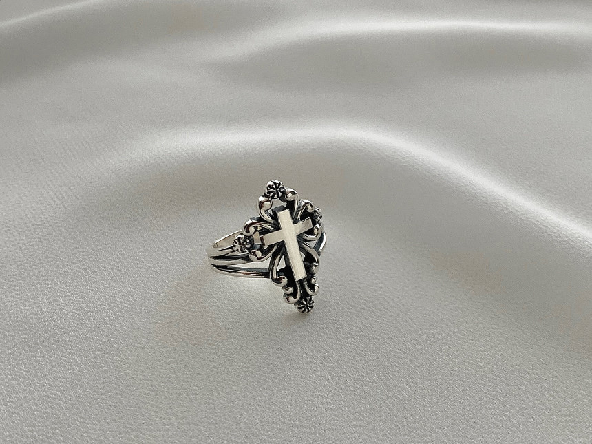 엔틱 십자가 트임반지 실버925