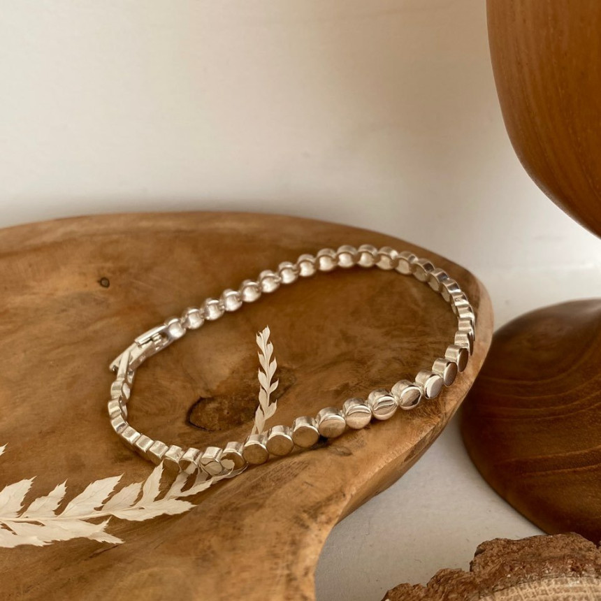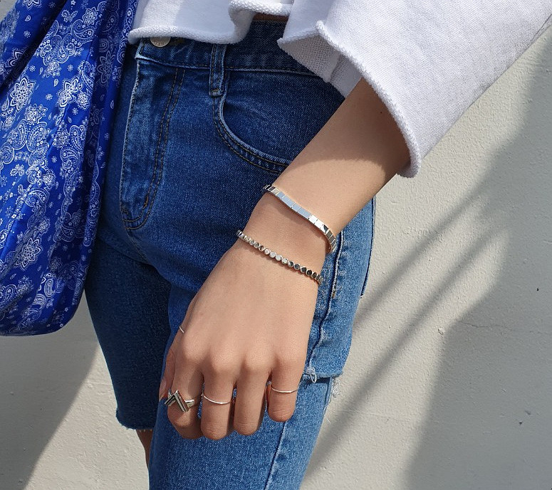 원형 납작은볼 테니스팔찌 실버925