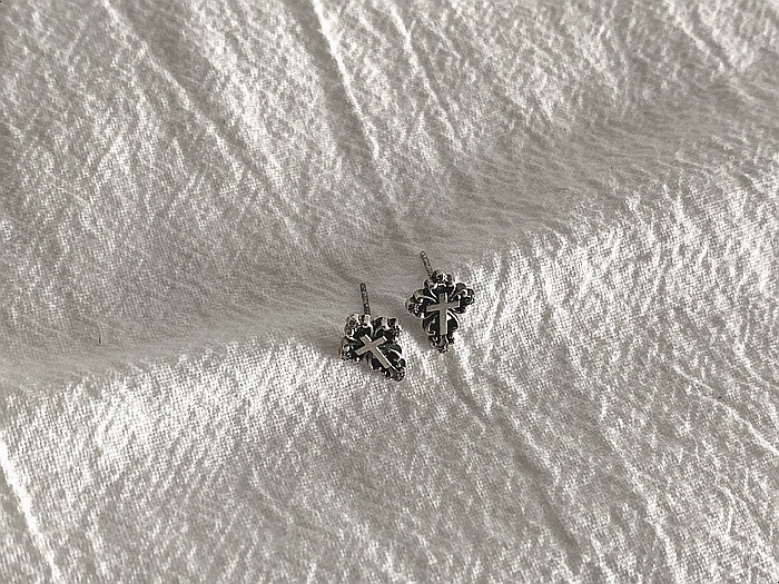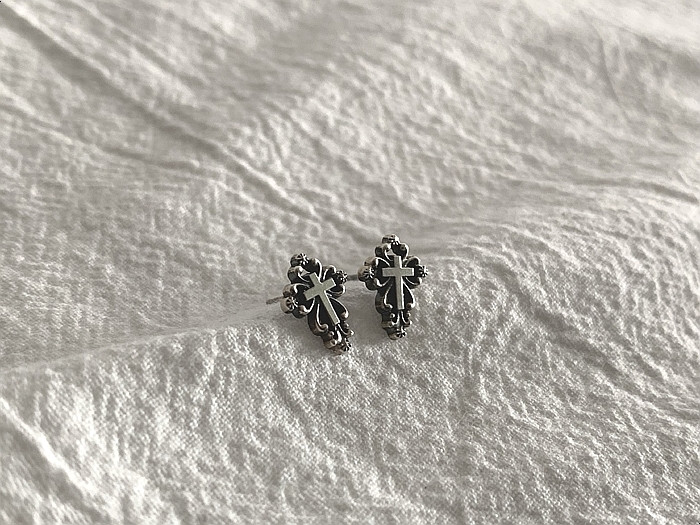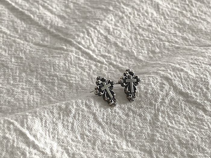 엔틱유화 미니십자가귀걸이 실버925