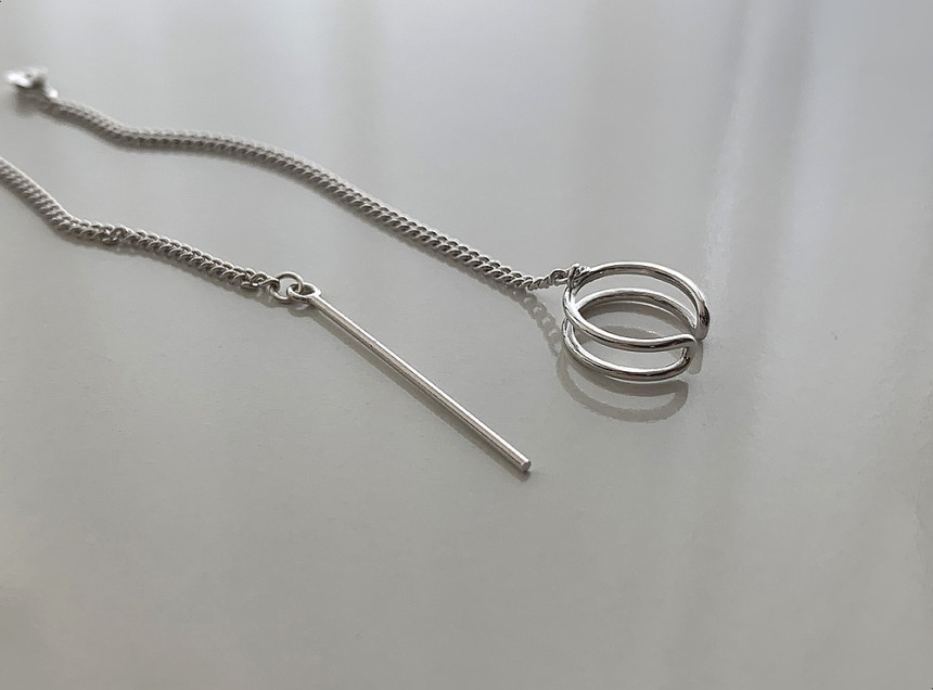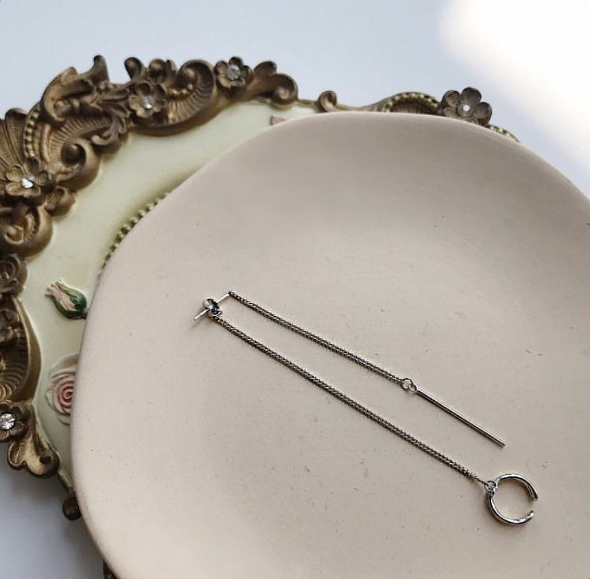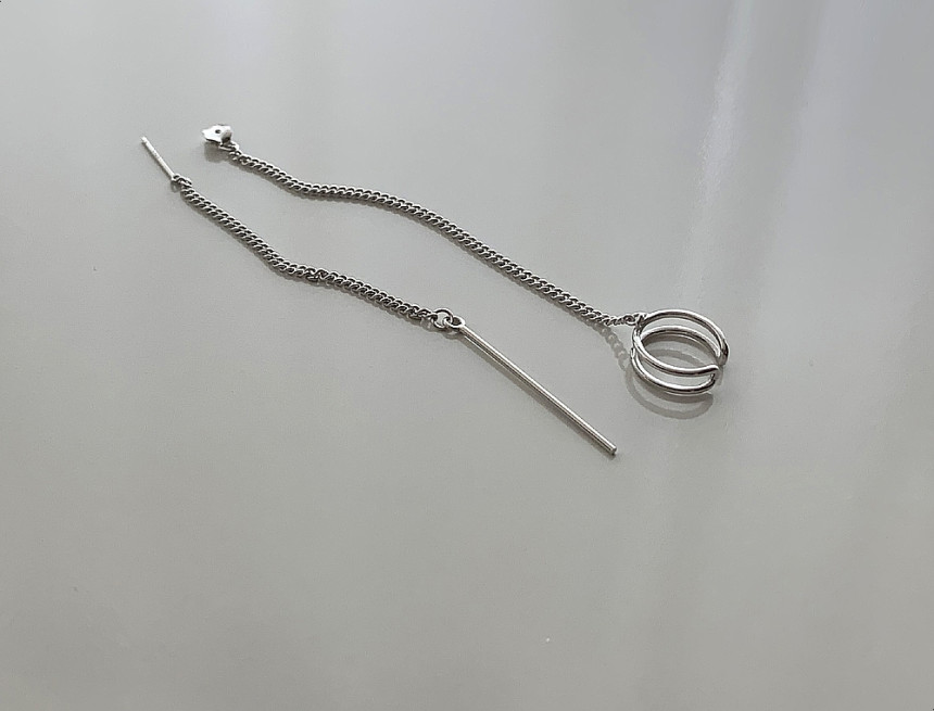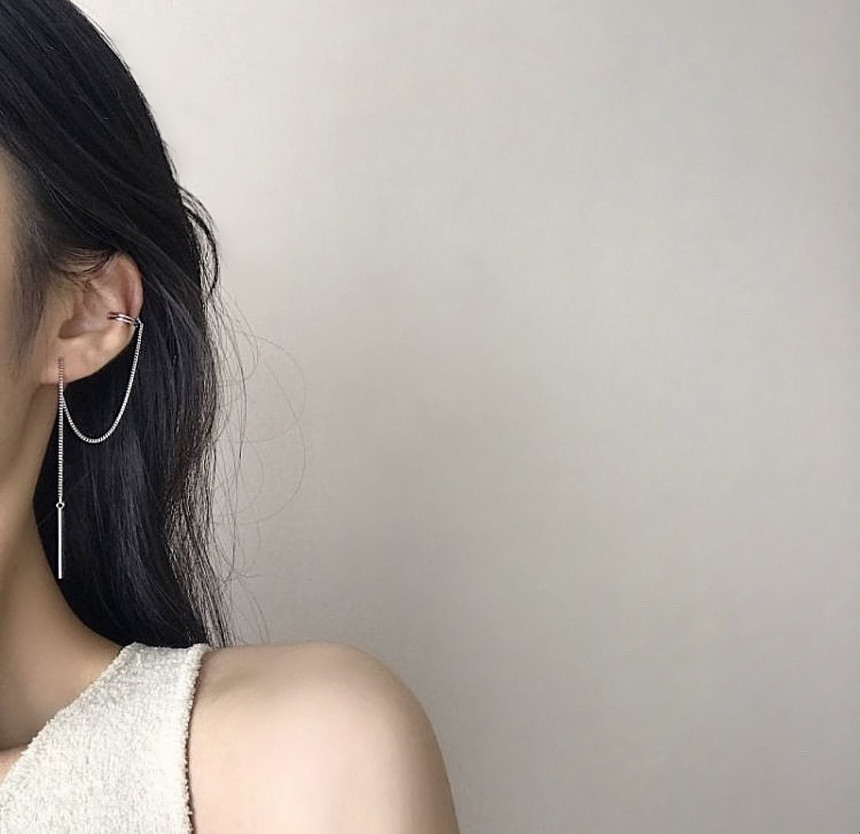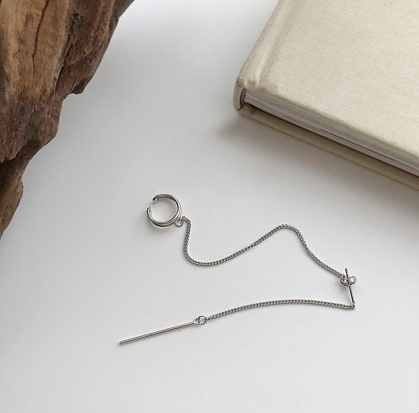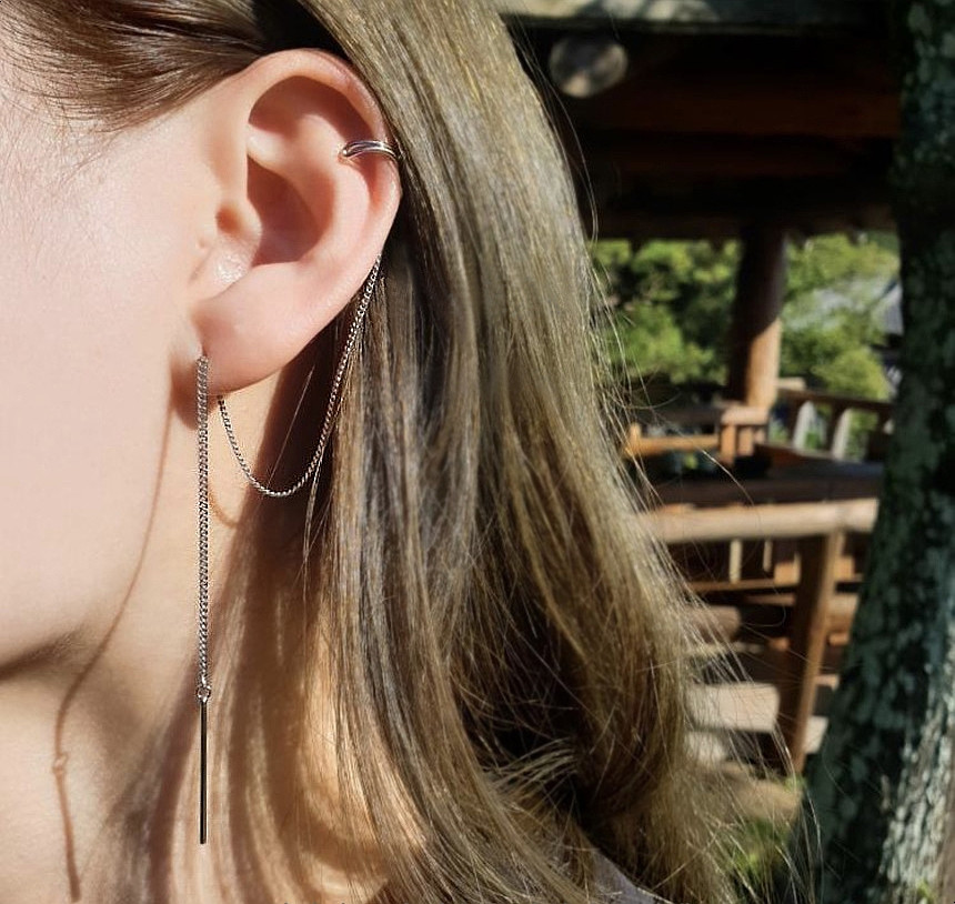 드롭 이어커프 연결체인귀걸이 실버925
