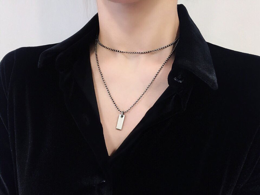로랑 스퀘어펜던트 레이어드 은볼목걸이 실버925