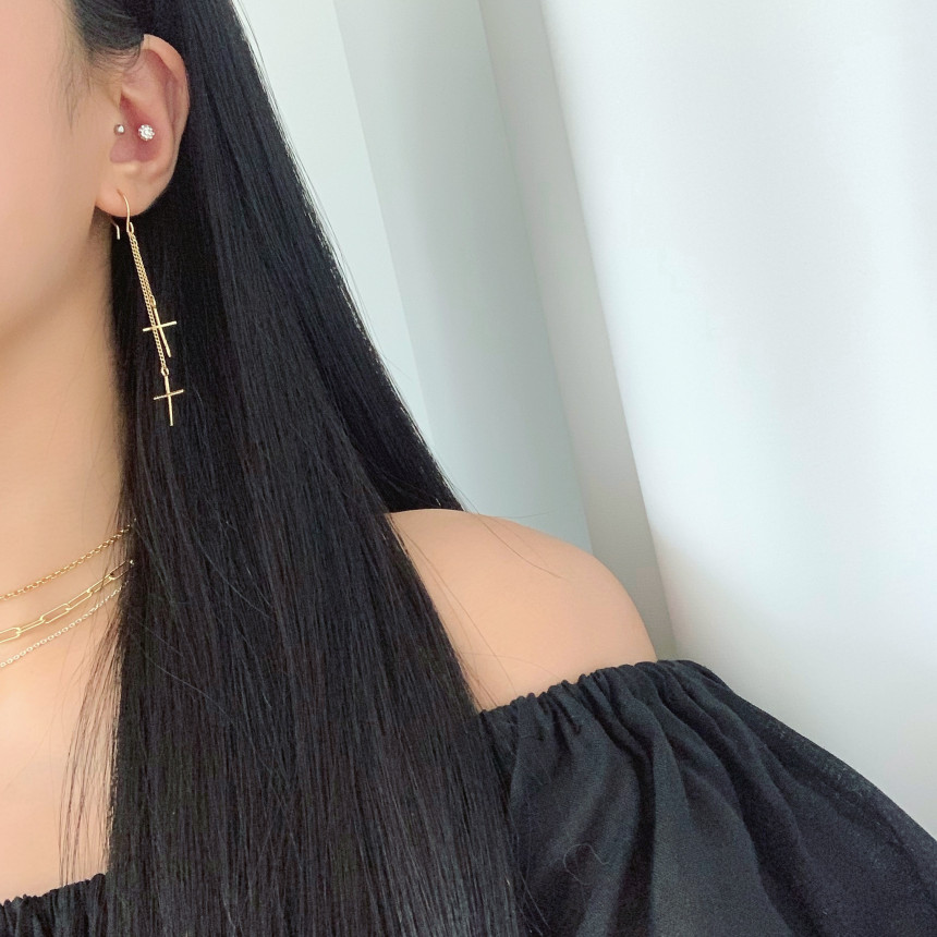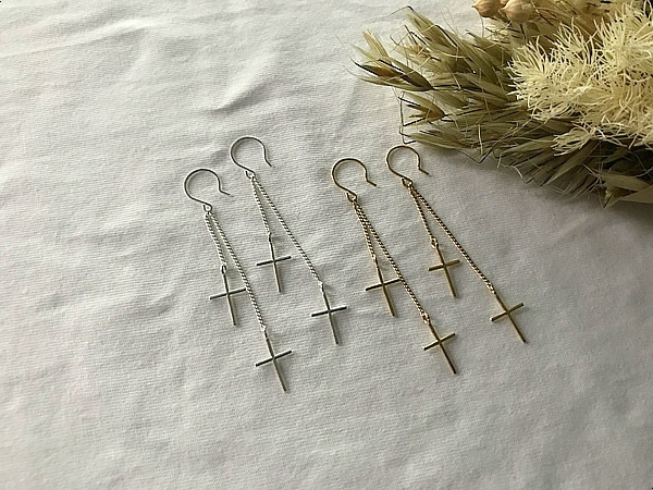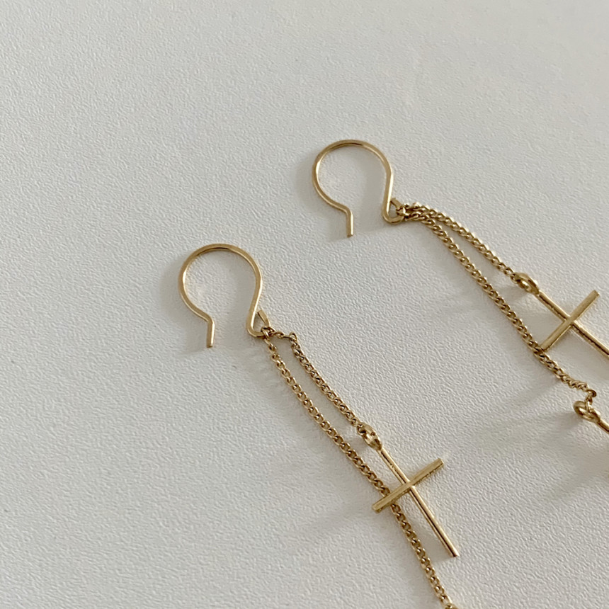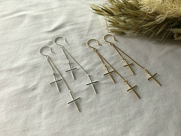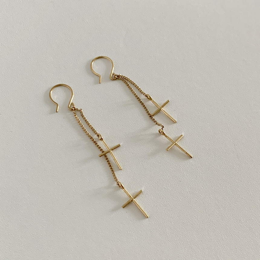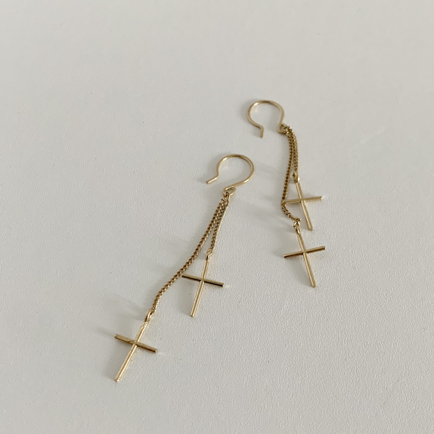 더블십자가 드롭 고리귀걸이 실버925