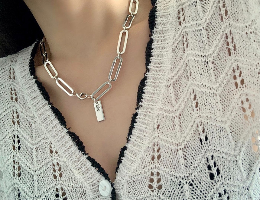 이자벨 볼드 스퀘어체인목걸이 실버925